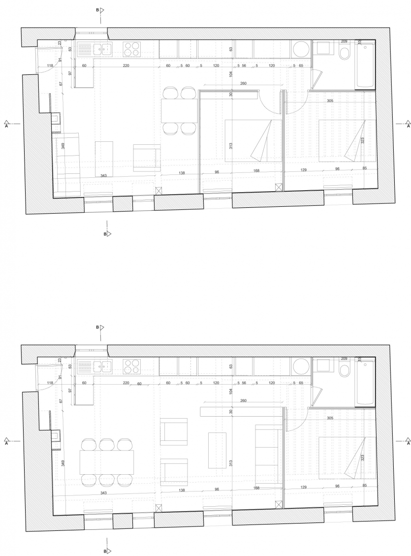 Plans version T2 en haut, T3 en bas