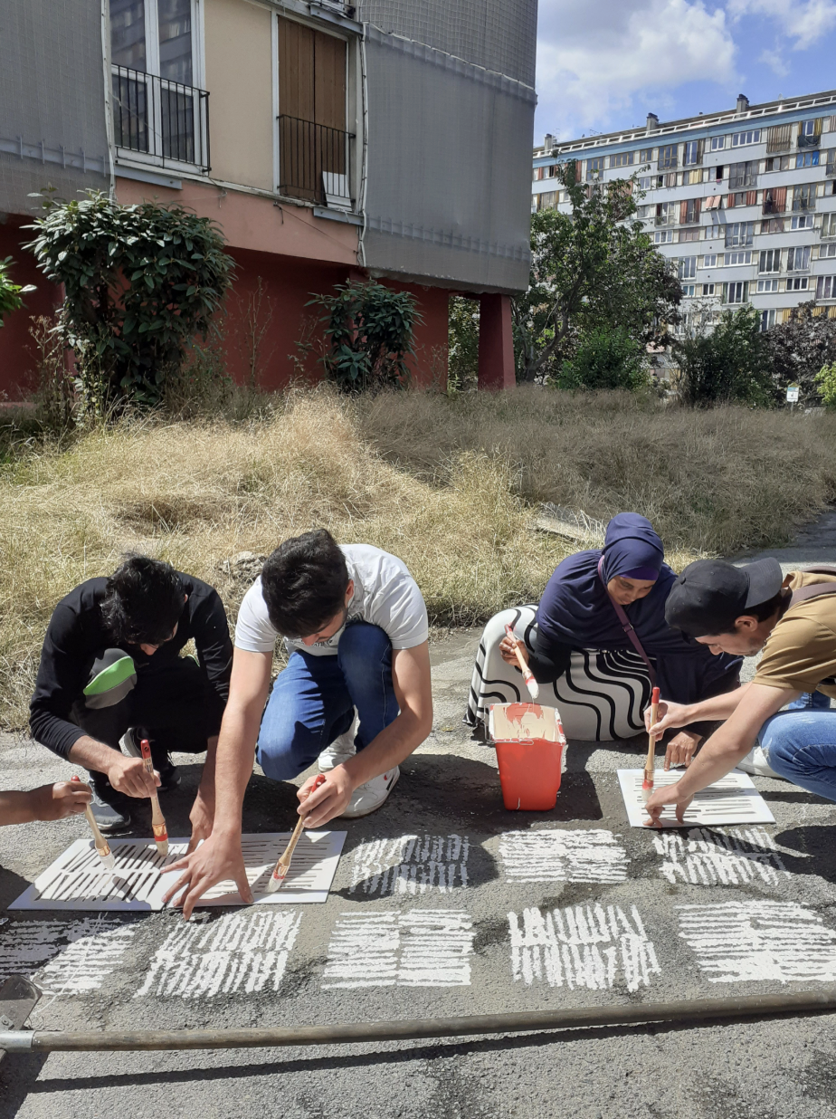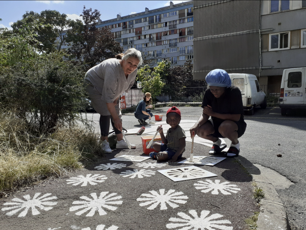 À l'approche de la fin de ces travaux et pour marquer la fin du chantier, SOL Architecture a souhaité porter un projet de chantier participatif de peinture de fresque au sol, aux abords de quatre bâtiments des copropriétés du Chêne Pointu et de l'Étoile du Chêne Pointu. Ce chantier, sur une semaine, était ponctué d'un ensemble d’ateliers et d’évènements pour rassembler les habitants du quartier ainsi que l'ensemble des acteurs.