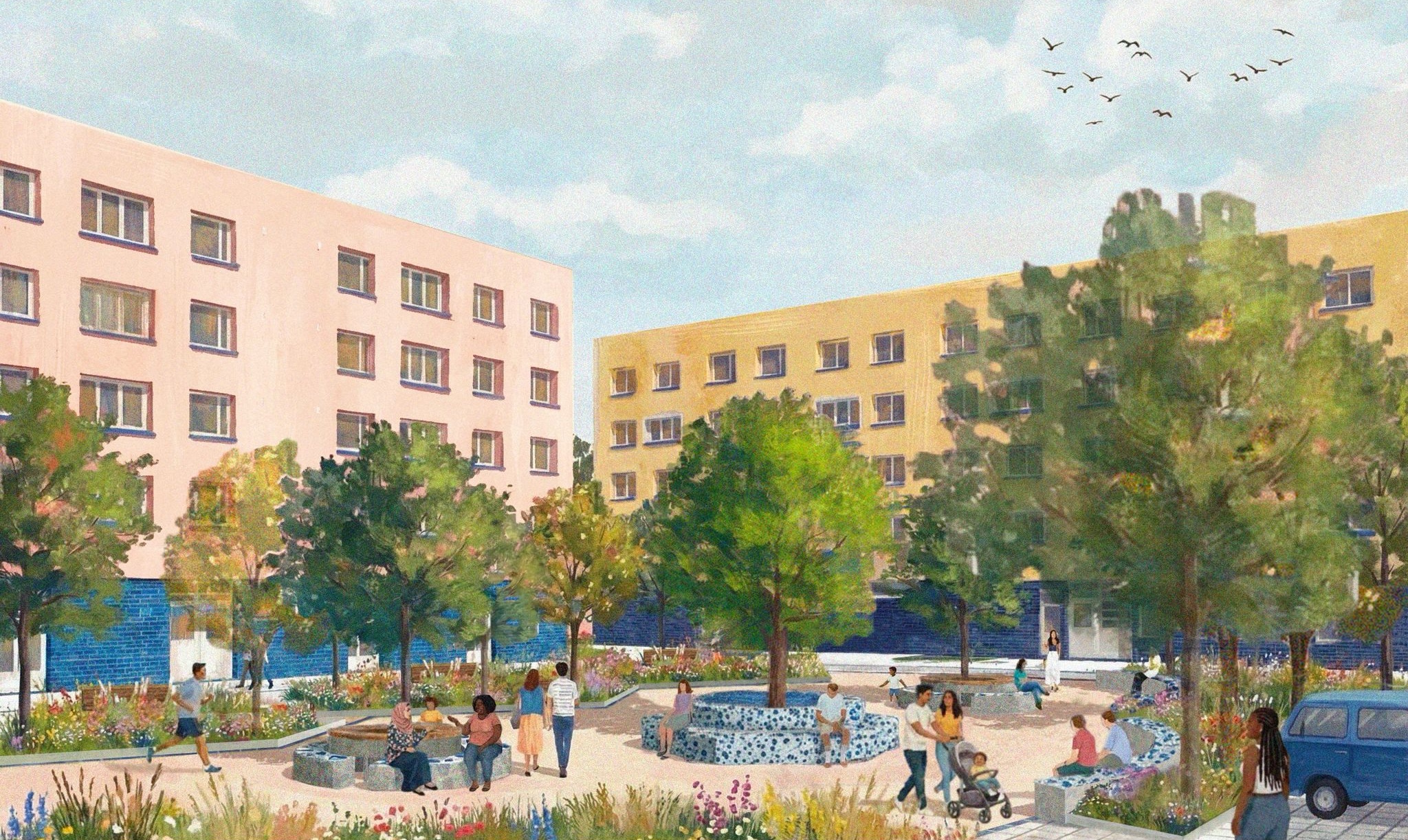 Des teintes d'enduit chaudes pour donner un air méridional. Des briques vernissées fabriquées en Ile-de-France, des enduits riches de textures, des matières et des teintes pour réenchanter la cité.