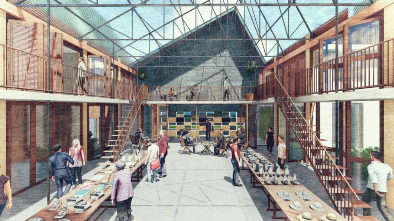 La Halle aux Artisans : transformation d’un ancien garage en ateliers et logements à Nozay (44), projet lauréat de l’appel à projet Réinventer Rural. Image : © Baptiste Mingoia.