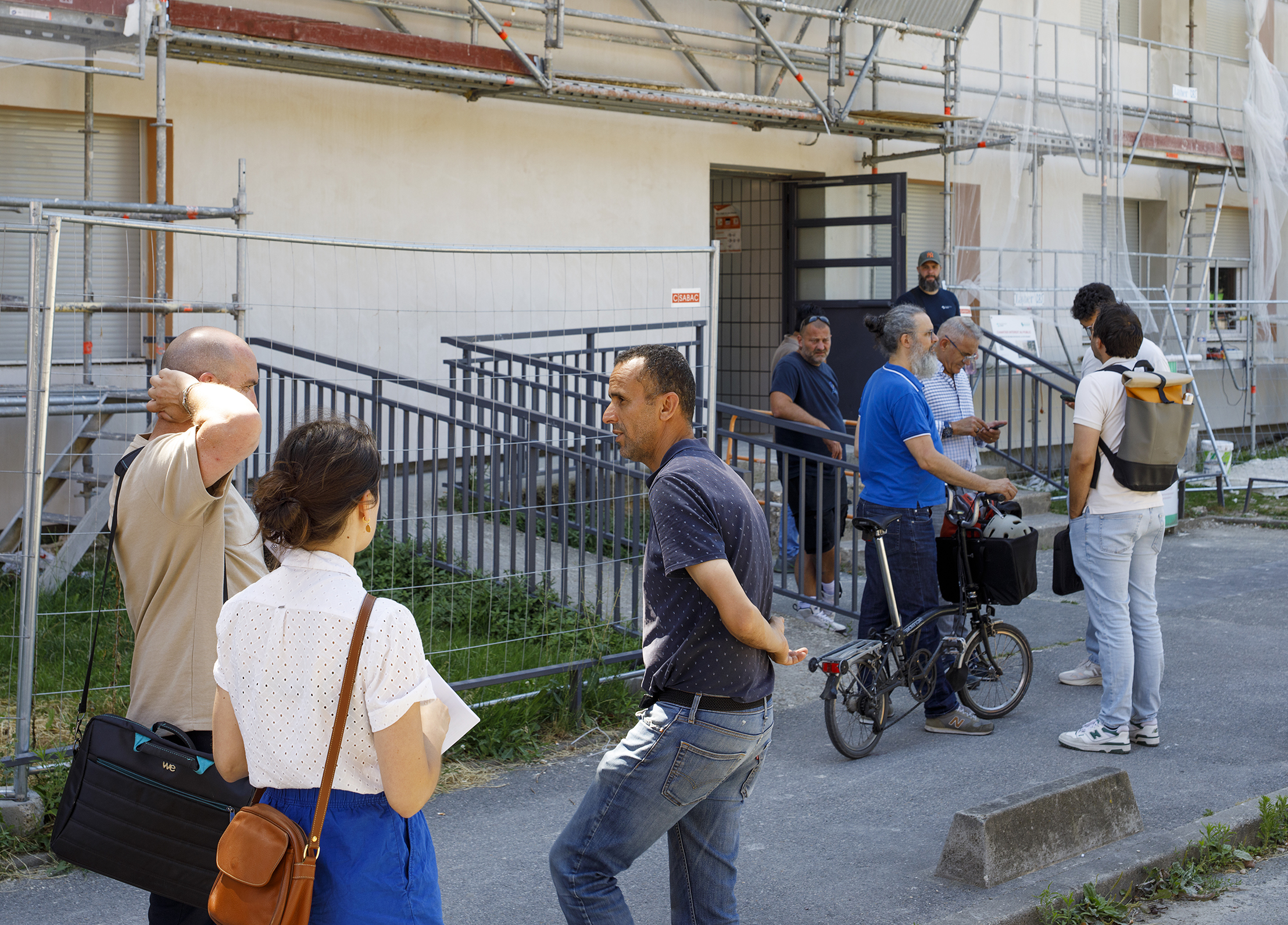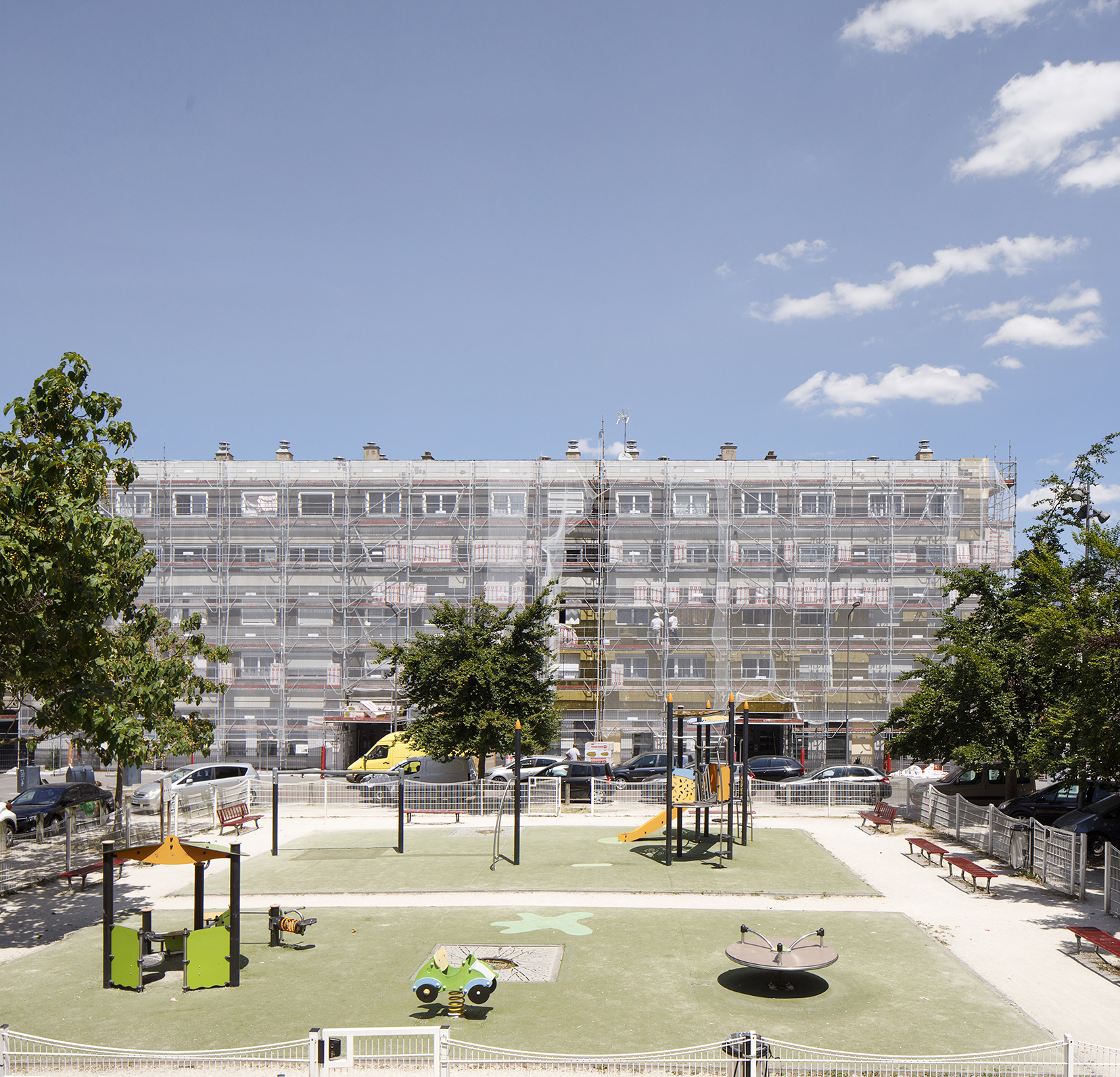 Les enjeux de cette réhabilitation sont nombreux, ce qui la rend stimulante et unique. À l’évocation de la cité des 4000, nos premières images mentales furent celles d’un quartier au passé douloureux, dont l’histoire impacte toujours l’image et la vie de La Courneuve. Sur place nous avons découvert quatre bâtiments austères de par leurs façades. Pourtant, de leur hauteur, envergure et organisation émanent à la fois un sentiment de protection et de respiration qui tranche avec les barres voisines et se rapproche des pavillons voisins. Nous comprenons alors pourquoi cette cité a été épargnée des grandes opérations de démolition.