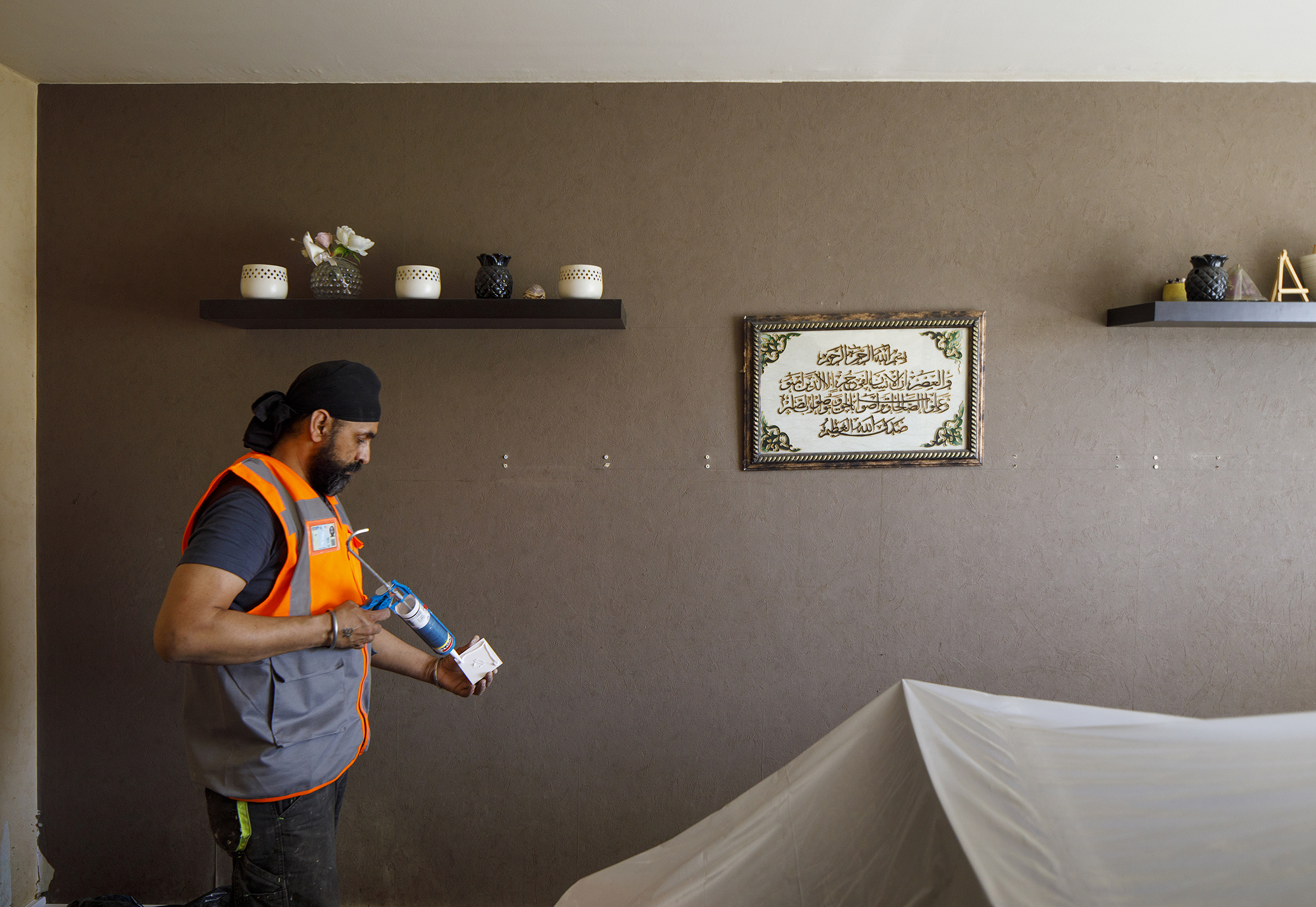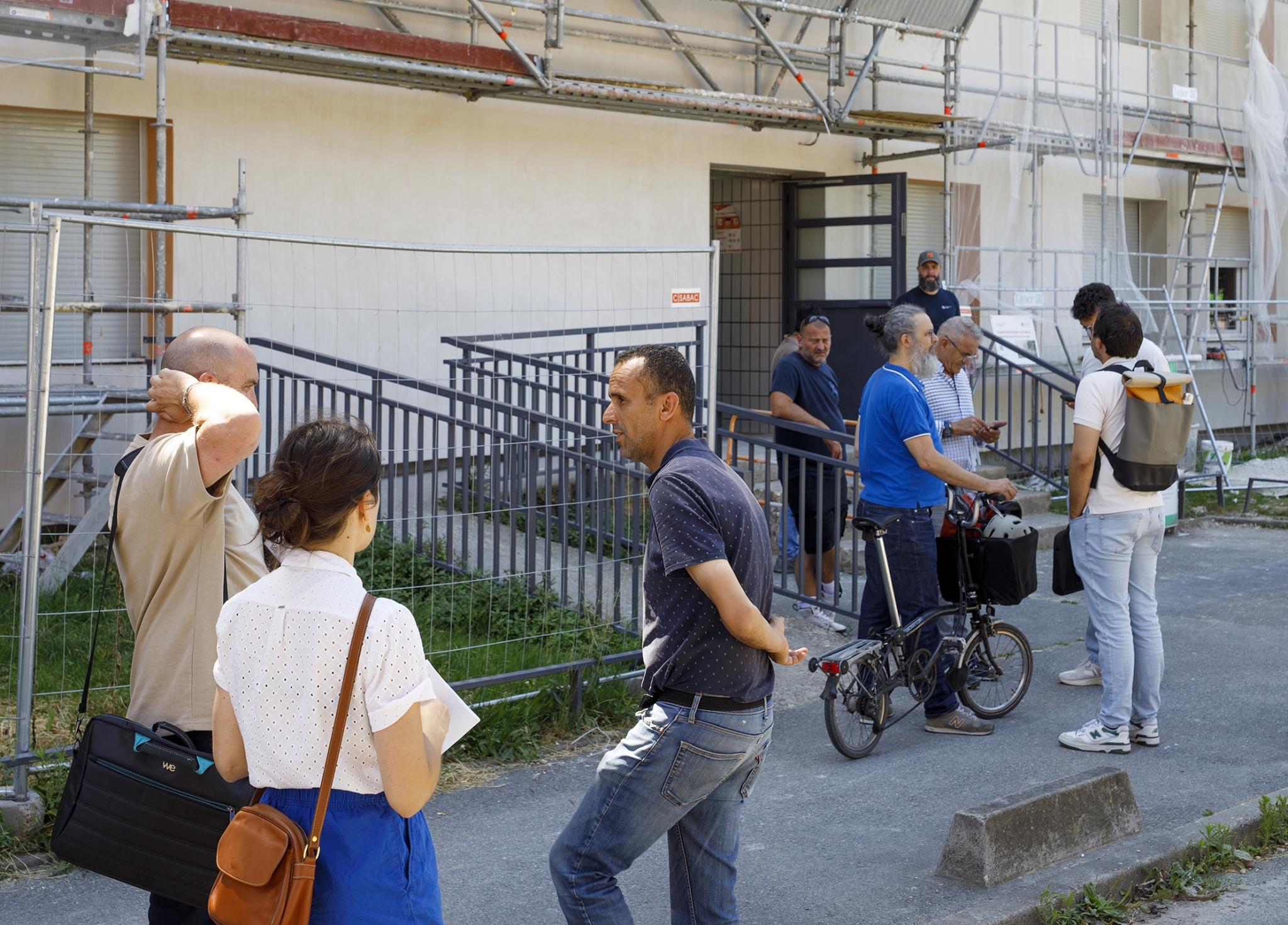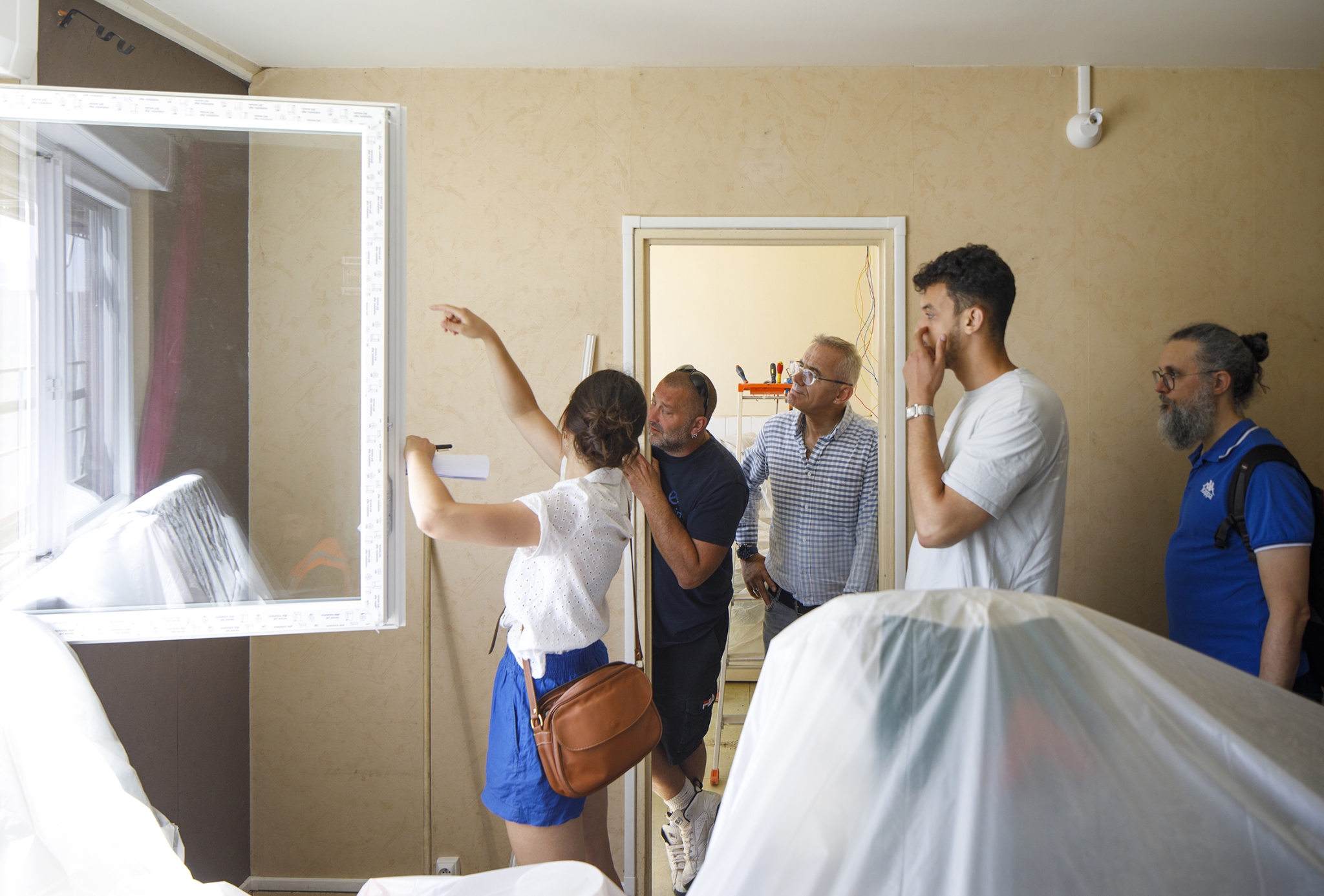 Anne et les entreprises réceptionnent les travaux dans un logement en présence des locataires
