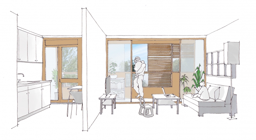 Le scénario «jardins d’hiver» - choisi par les copropriétaires - augmente la surface habitable des logements grâce à des nouveaux espaces entre l’intérieur et l’extérieur - «l’épaisseur de la matière isolante devient habitée». Il s'agit de traiter la performance énergétique du bâtiment autrement qu’avec des solutions purement techniques.